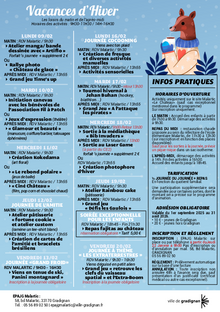 Plaquette jeunesse Programme EPAJG Malartic le Château - 6/10 ans - Vacances d'Hiver 2026 1 document Publié le 12 janvier 2026 Retrouvez les programmes de l'EPAJG Malartic le Château - Vacances d'Hiver 2026 pour les 6/10 ans. VERSO-MALARTIC-ProgKids-HIVER.pdf (.pdf, 710,8 Ko) Télécharger PrécédentRetour à la listeSuivant