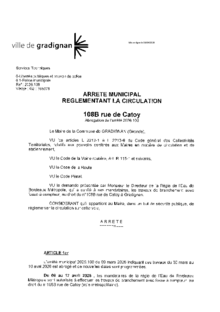 Arrêtés de voiries et espaces publics ARRETE 2026-139 : 108B RUE DE CATOY - BRANCHEMENT ASSAINISSEMENT ET EAU POTABLE 1 document Publié le 09 avril 2026 AMT_2026_139_108B_RUE_DE_CATOY.pdf (.pdf, 72,7 Ko) Télécharger PrécédentRetour à la listeSuivant