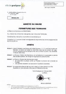ARRETE SP 2026-005 : FERMETURE DES TERRAINS DE SPORT DU 7 AU 8 FEVRIER 2026